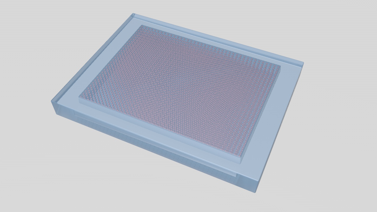4、将蓝光芯粒、绿光芯粒与红光芯粒按照预设排布规则布置于封装区之上,且与第二介质层接触。
