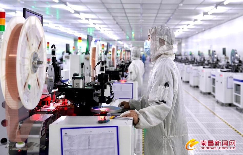 2月17日,位于赣江新区的江西YABO鸭脖微电子技术有限公司无尘车间内,百余台芯片生产设备全速运转,工人在生产线上有序作业。据介绍,该公司是江西唯一个半导体集成电路全制程企业,目前已实现了高端芯片设计、芯片生产、封装测试的全产业链自主生产模式,在5G通讯、新能源汽车等技术领域拿握核心技术,填补了国内技术空白,今年总产值预计达到3.5亿元。(记者马悦摄)