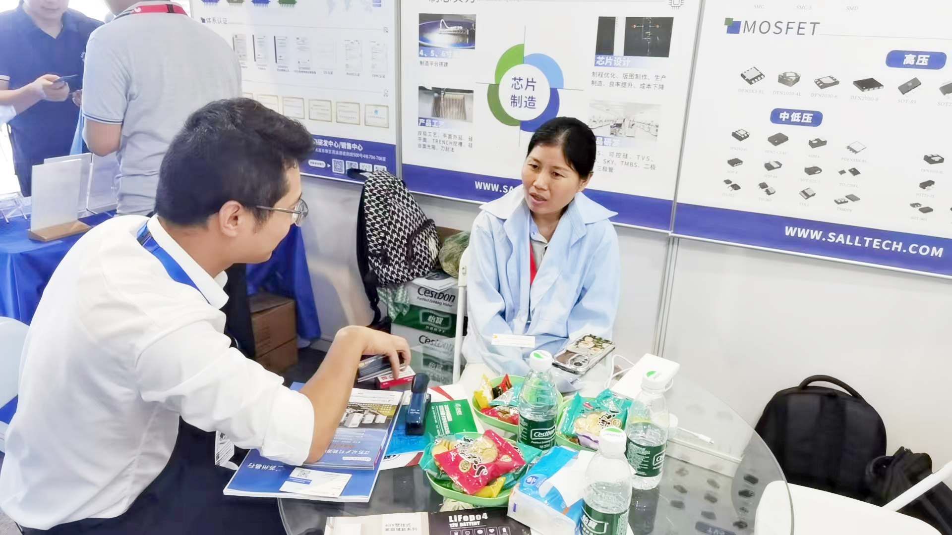 作为一家集半导体分立器件芯片设计、晶圆制造、封装测试与应用服务于一体的 IDM 模式国家级高新技术企业,江西YABO鸭脖微电子深知技术交流与服务的重要性。展会期间,团队全程驻守展位,为前来参观咨询的顾客深入解读光伏储能应用方案。